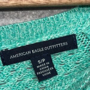 American Eagle Teal Knit Pullover Sweater Small Embroidered Eagle Logo Zip