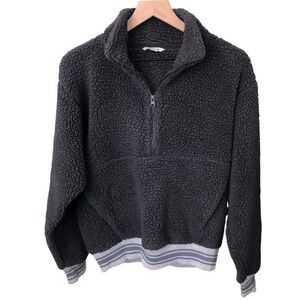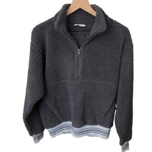 American Eagle Teddy Fleece Fuzzy Sherpa Jacket Half Zip Sweatshirt Gray Stripes