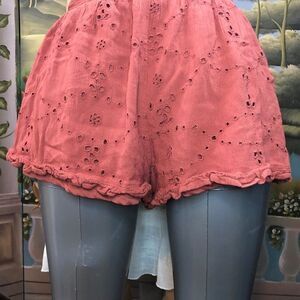 American Eagle Outfitters Terracotta Eyelet shorts with ruffled hem. Size Small/Petite