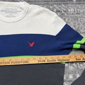 American Eagle Thermal Vintage Fit Long Sleeve Shirt Striped Mens Small Waffle