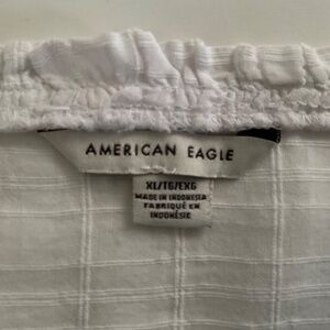 American Eagle Tie-Front Long Puff Sleeve Peasant Blouse XL White Boho Cottage Oversized