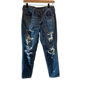 American Eagle Tom Girl Jeans Womens Sz 6 Regular Destroyed Distressed Med Wash Ripped Torn