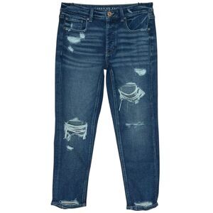 American Eagle Tomgirl Distressed Jeans Size 6 Short Stretch Button Fly AEO 6S