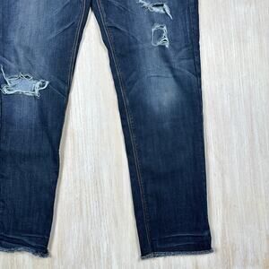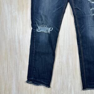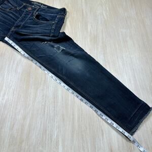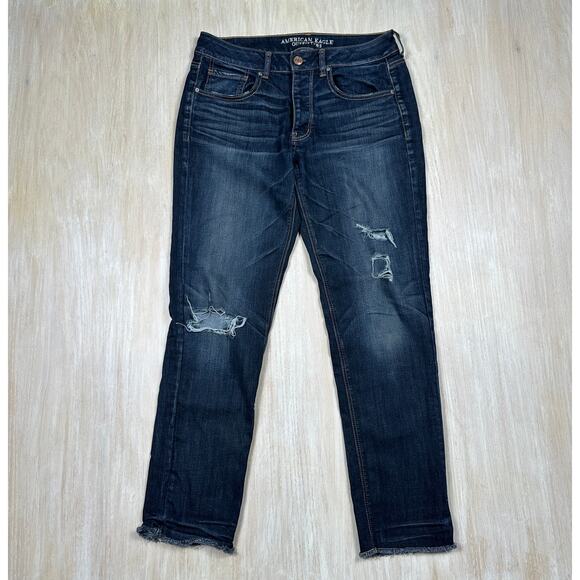 American Eagle Tomgirl Distressed Raw Hem Dark Wash Super Stretch Denim Jeans 6