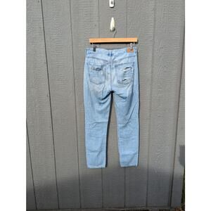American Eagle Tomgirl Jeans 2 Western distressed ripped button fly light wash in excellent condition with no noteworthy flaws please review all photos to fully understand condition and sizing