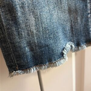 Tomgirl jeans, stretch, size 12. Barely worn, well-loved jeans by American Eagle, these jeans have a button fly and are distressed with holes on the front of both legs. The jeans are American Eagle Regular length and have a distressed/cutoff with a proper hem to keep the fray from traveling and making the jeans shorter over their lifetime.