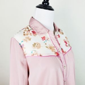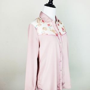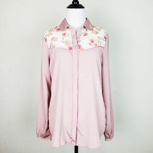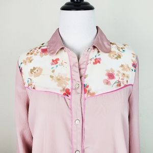 American Eagle Top Floral Western Mauve Pink Button Down Cottagecore Spring Fall