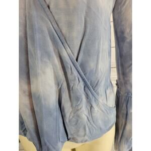 American Eagle Top Soft Sexy Size XS Blue White Tie Dye Bell Sleeve Blouse;