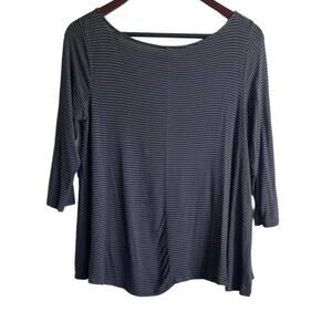 American Eagle Top Women S Gray Black Stripe Boat Neck 3/4 Sleeve Stretch Light