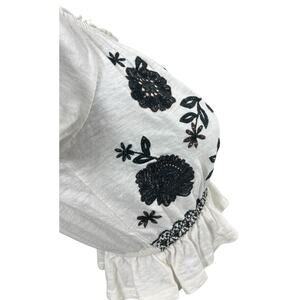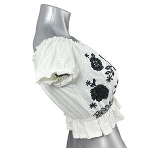 American Eagle Top Women's Black White XS Babydoll Crop Embroidered Y2K
