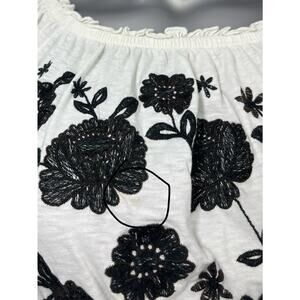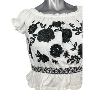 American Eagle Top Women's Black White Large Short Sleeve Crop Embroidered