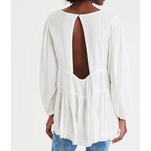 American Eagle Top Womens Large White Long Sleeve Babydoll Open Back Viscose