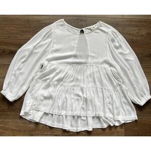 American Eagle Long Sleeve White Babydoll Blouse Top