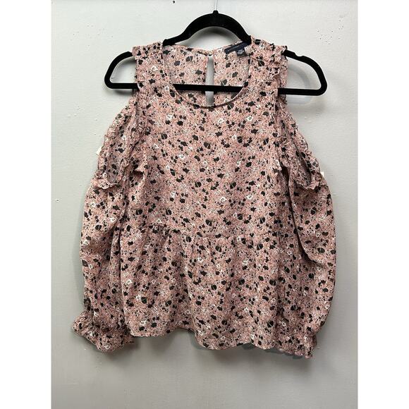 American Eagle Top Womens Small Pink Floral Cold Shoulder Blouse Boho Sheer