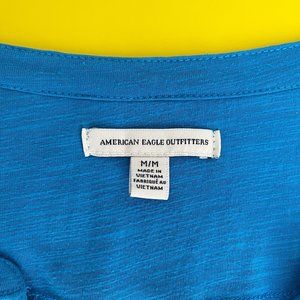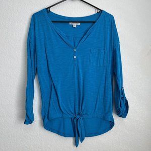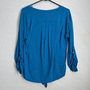 American Eagle Top with Bottom Front Tie and Convertible Sleeves, Light Blue, M