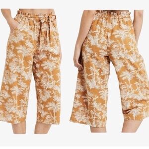 American Eagle Tropical Cotton/Linen Hawaiian Wide Leg Crop Paperbag Waist Pants