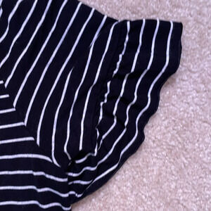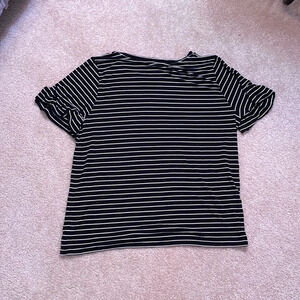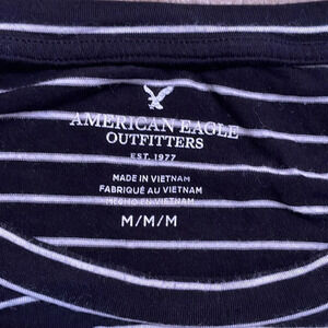 American Eagle T-shirt Size medium Black with white stripes Very stretchy Cute ruffle in sleeve In great condition