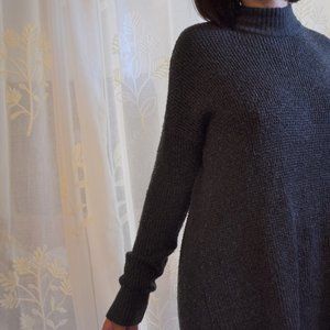 Dark green mockneck sweater. It is cozy and perfect for a cabin weekend.