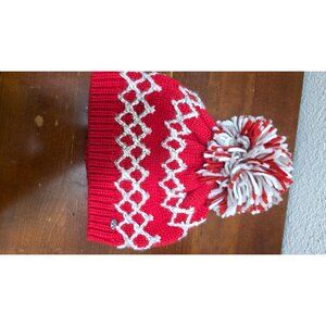 American Eagle Unisex Knit Winter Beanie Hat With Pom Pom Red & White Geometric