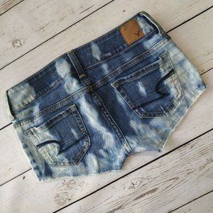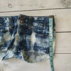 American Eagle Upcycled 2 button Shorts sz 00 Reverse Tie Dye Denim Cutoff AE