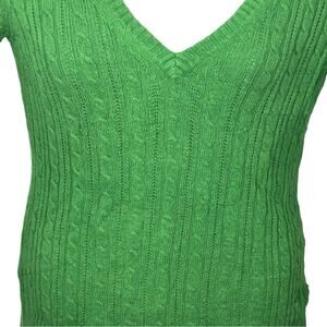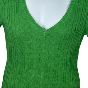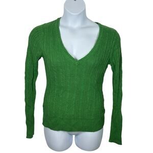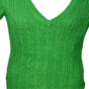 American Eagle V-Neck Cable Knit Sweater Kelly Green Vintage Fit Size Large