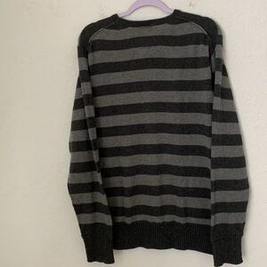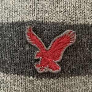 Stay stylish and comfortable with this American Eagle Outfitters gray black striped soft sweater. Perfect for any casual occasion.