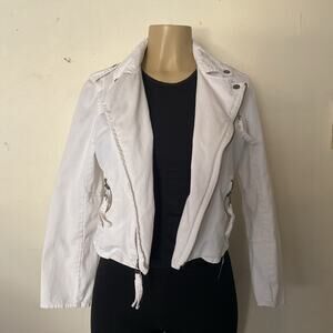 Vintage 2012 American Eagle White Moto Jacket Women’s Small Denim Biker Style