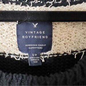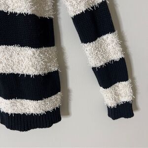 American Eagle Vintage Boyfriend Black White Stripe Fuzzy Textured Knit Sweater. Size Small.