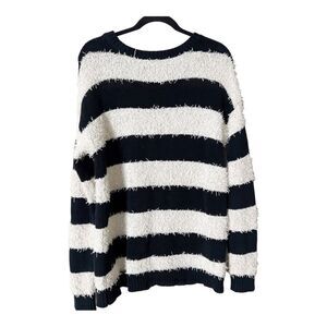 American Eagle Vintage Boyfriend Black White Stripe Fuzzy Textured Knit Sweater