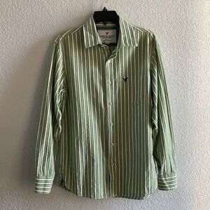 American Eagle Vintage Fit Men’s Button Down Long Sleeve Green Stripe Shirt Size Medium