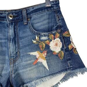 American Eagle Vintage Hi Rise Festival Jean Shorts Flowers Bird Blue Women's 4