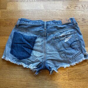 American Eagle Vintage Hi Rise Festival Shorts. Stock photos provided for fit and style reference. Size 2. Distressed, two toned, hidden button fly, missing one back pocket (on purpose), cut-off/raw hem. One of the buttons on the hidden button fly is missing (see last photo). It could be replaced but could honestly be worn without replacing it. There are several other buttons that keep it pretty closed. 100% cotton. Ask any questions!