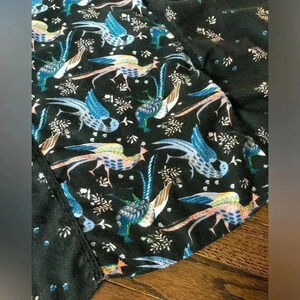 Color: Navy Blue with light blue, pink, white, etc peacock floral design.