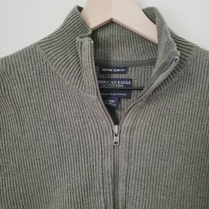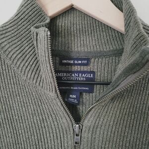 American Eagle Vintage Slim Fit Green Knit Quarter Zip Sweater Size Medium