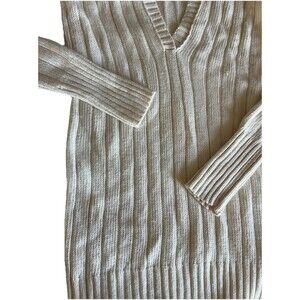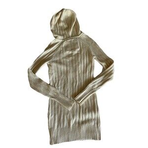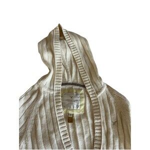 American Eagle Vintage Y2K Womans Sweater Small Long Ribbed Deep V Hooded Cream