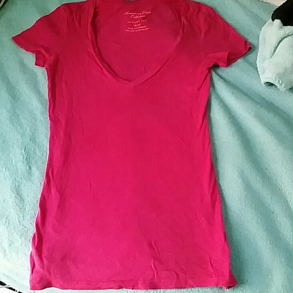 very lightly, almost never worn American Eagle hot pink deep V t-shirt