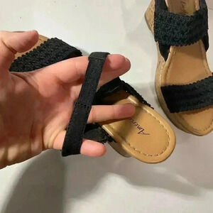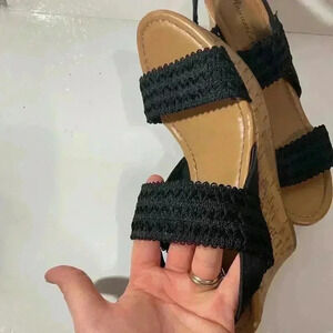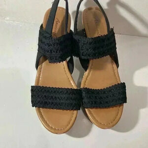 American Eagle Wedge Sandals crochet style with elastic heel black womens size 9