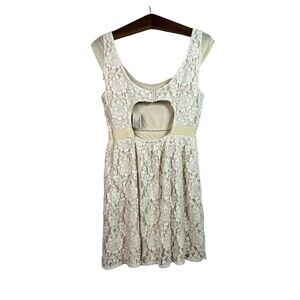 New with tags. White/beige with floral lace pattern. Skater dress. Back keyhole detail. Refer to pictures for measurements. From smoke-free/pet-free home.