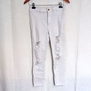 American Eagle White Distressed Hi-Rise Jegging Crop Size 8