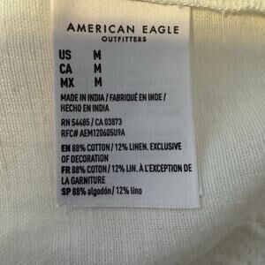 American Eagle White Lace Cutout Button Up Shirt Cotton Linen Women Medium NWT