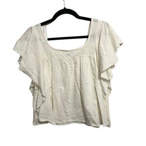 American Eagle White Ruffle Sleeve Top Square Neck Cotton Size S