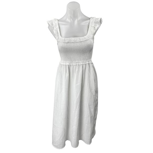 American Eagle White Sleeveless Smocked Floral Ruffle Fit & Flare Midi Dress XS