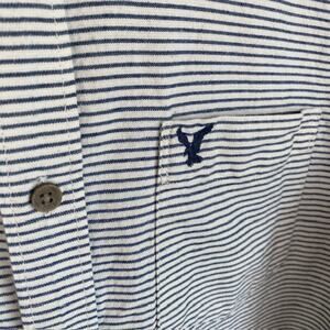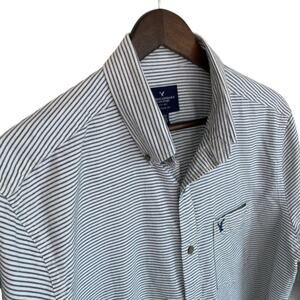 American Eagle White and Blue Striped Classic Fit Button Down - Size Large
