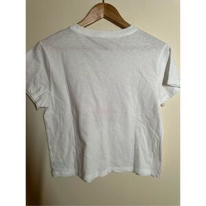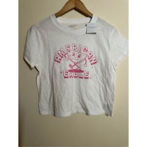American Eagle White and Pink Logo Short Sleeve Tee Shirt Top Size Small. New with tag. Does have a smudge on back shoulder as shown in photo.
