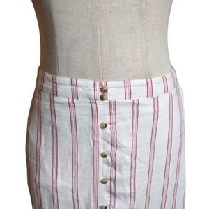 American Eagle White and Red Striped Split Front Maxi Skirt