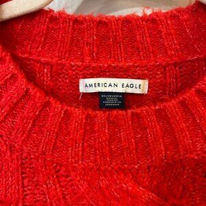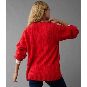 American Eagle Whoa So Soft Cable Knit Sweater Cherry Red Crewneck Size XS