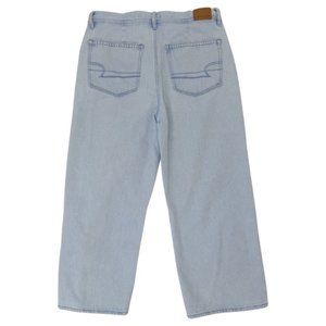 American Eagle Women's Light Wash Wide Leg Crop Denim Jean, side pockets, front pleats. 95% Cotton/5%Polyester