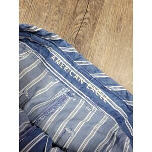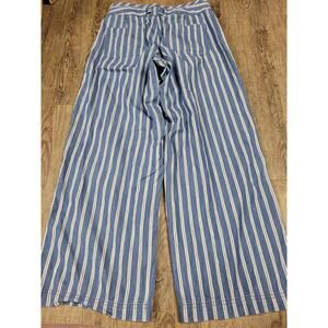 American Eagle Wide Leg Pant Blue White Striped Belted Fitted Waist 2R