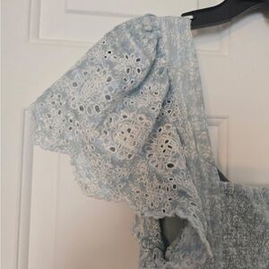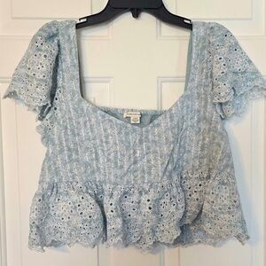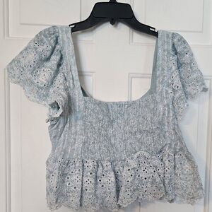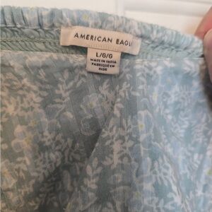 American Eagle Woman’s Eyelet Crop Top Large Floral Blue Green Sweetheart Neck