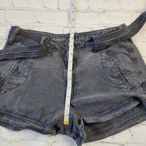 American Eagle Woman’s Hi Rise 100% lyocell dark gray belted shorts size 2